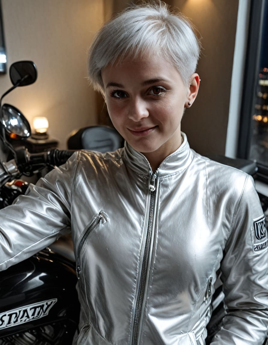 Just got my new motorcycle jacket and… wow. It’s like it was made for me: bold, dangerous, and way too tempting.